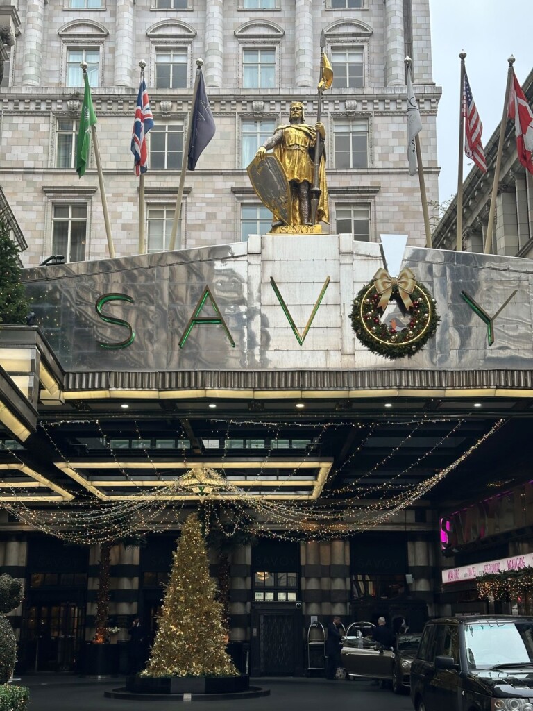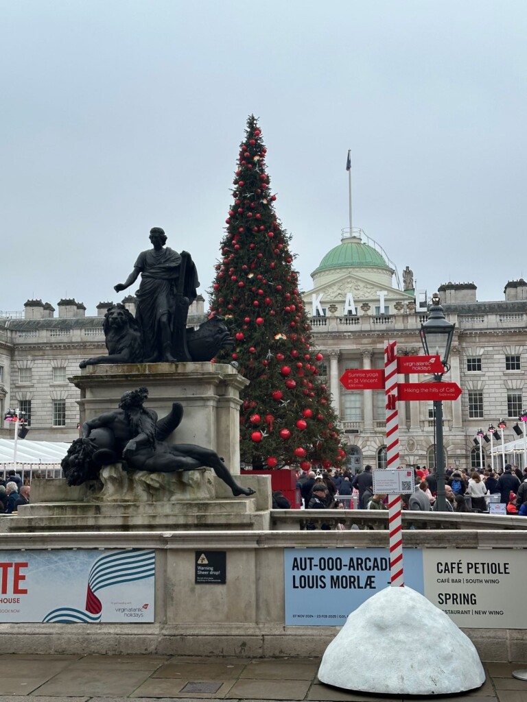 印象深いプラットフォームの壁画をほれぼれと眺めたあと、途中サボイホテル(Savoy Hotel)のクリスマスツリーを宿泊者ではないため、遠慮がちにサクッと見て、サマセット・ハウス(Somerset House)へ向かいました。