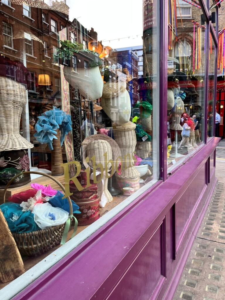 メリルボーン(日本語ではよくこのように表記されますが、実際の発音はマーリボンに近いです)地区にあるVV Rouleaux(ヴィヴィ・ルーロー)は、リボンや装飾素材を取り扱うお店です。特にウェディングや特別なイベント用の衣装や帽子・ファシネーターなどのヘッドドレスにぴったりなアイテムを見つけることができます。