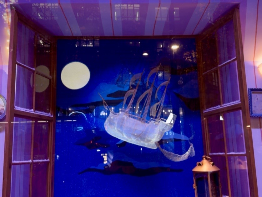 最後になりましたが、2025年に創業150周年を迎えたリバティのアトリウムには、チューダー調のリバティの建物が退役した二隻の海軍戦から作られた歴史にちなんで「グッドシップリバティ号」が登場。