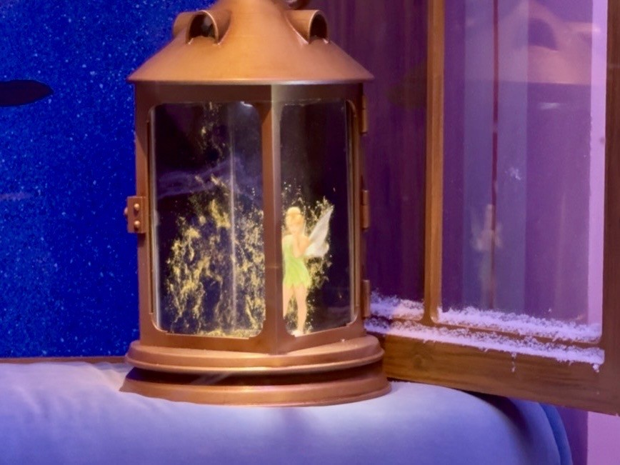 ティンカーベルが魔法の粉を振りまきつつウィンドウ内を次々と移動して現れる仕掛けで、ディズニーの魔法にかかり観客は夢の世界へと迷い込みます。