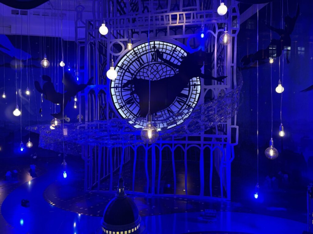 ティンカーベルがセルフリッジズの建物に魔法の粉をまき散らす演出で、まるでディズニーの魔法の世界へ迷い込んだような気分に誘われます。