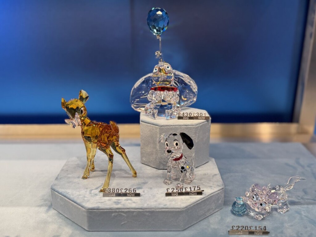 コーナーショップには大きなスワロフスキーショップが期間限定でオープンし、スワロフスキー製のきらきらのディズニーキャラクターが並んでいました。