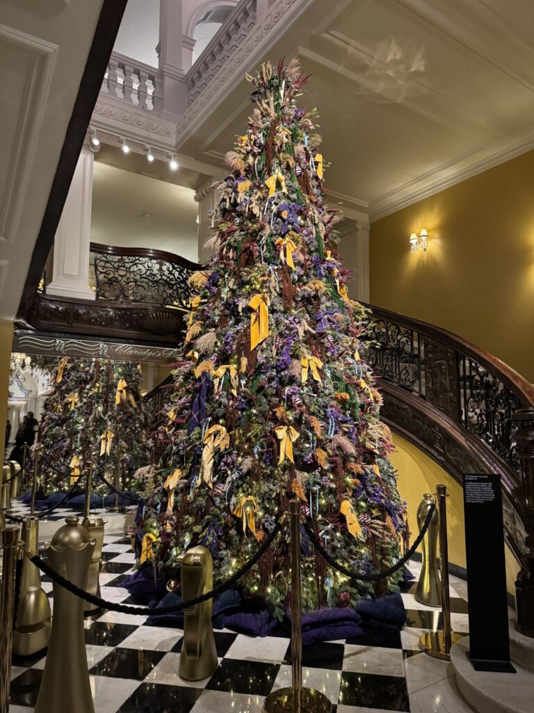 個人的に毎年楽しみにしているメイフェアの5つ星ホテル、クラリッジズのクリスマスツリー。2025年はバーバリーのデザインです。