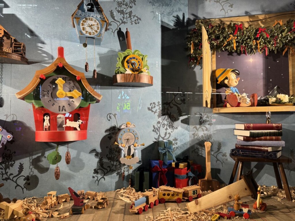 ディズニーの人気のストーリー、わんわん物語、不思議の国のアリス、美女と野獣、くまのプーさん、メリーポピンズ、ファンタジア、ピノキオなどが煌めく楽しいクリスマスウィンドウは全部で12個あり、まるでディズニーランドにいるような気分に浸れるマジカルクリスマスはディズニーファンだけでなく必見のアトラクション。
