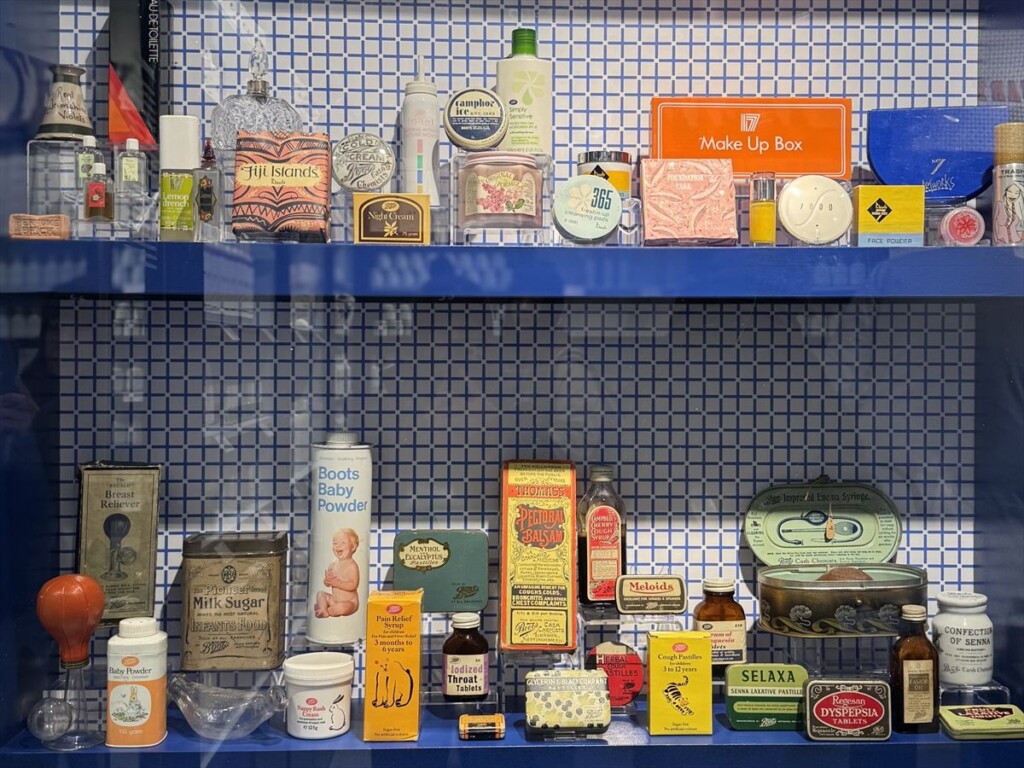 店内にはブーツのアンティークの瓶や缶が飾られていてこれもマニアにはたまらない演出になっていました。