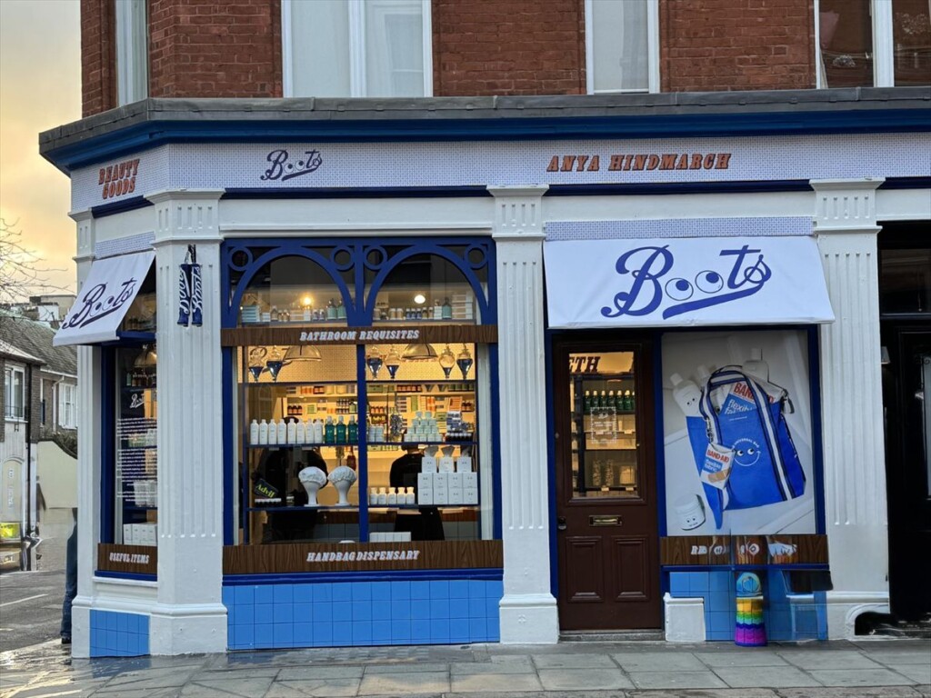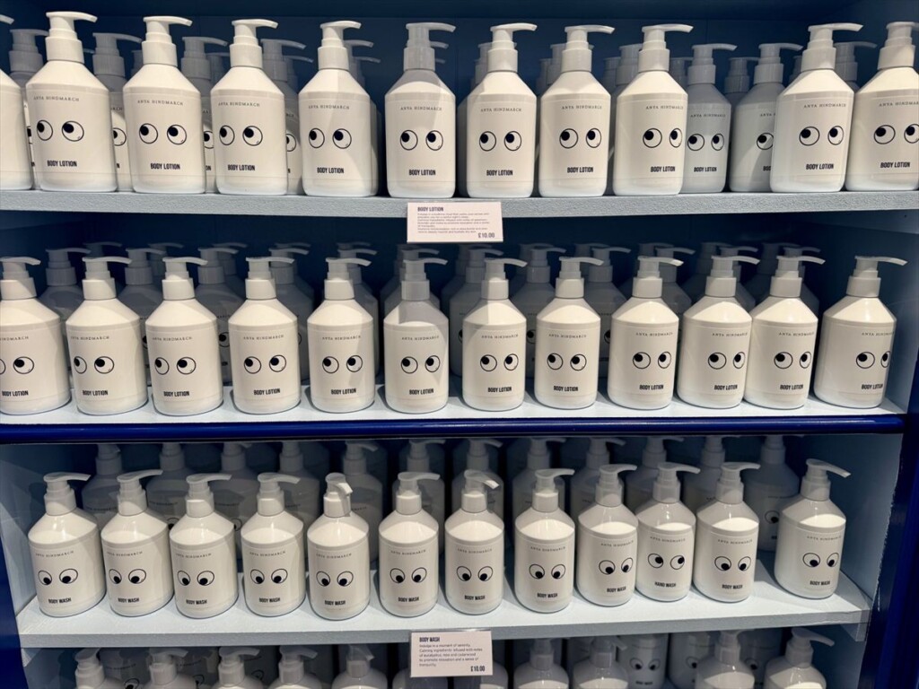 慣れ親しんだブーツの商品、シャンプー、ハンドソープ、マウスウオッシュ、ネイルリムーバーなどのボトルにアニヤの可愛いアイズが付いた商品が並ぶ、ブーツの歴史と伝統を称える1970年代にインスパイアされたコンセプトストアが期間限定でアニヤヴィレッジにオープン中です。
