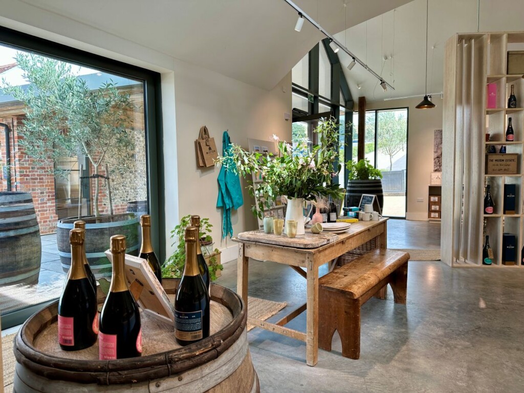 美しいヴィンヤードには併設ショップはありませんが、事前予約で(https://ambrielsparkling.com/sip-sparkling-wines-from-sussex/)テイスティングやツアーも楽しむことができます。