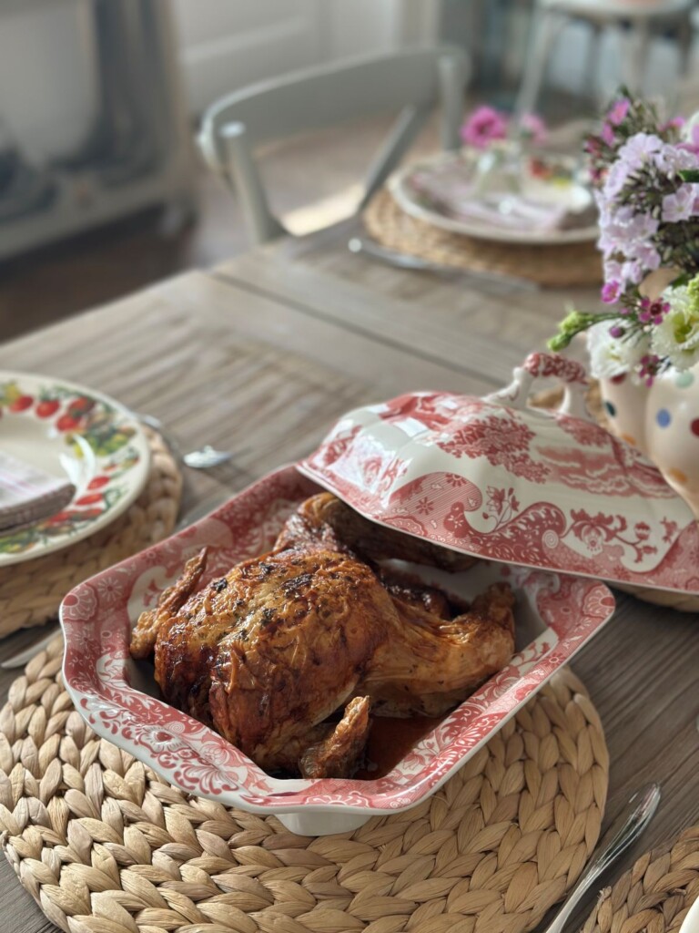 メニューはローストチキン、ニューポテト、フレッシュサラダ、そしてデザートはスティッキートフィープディング。