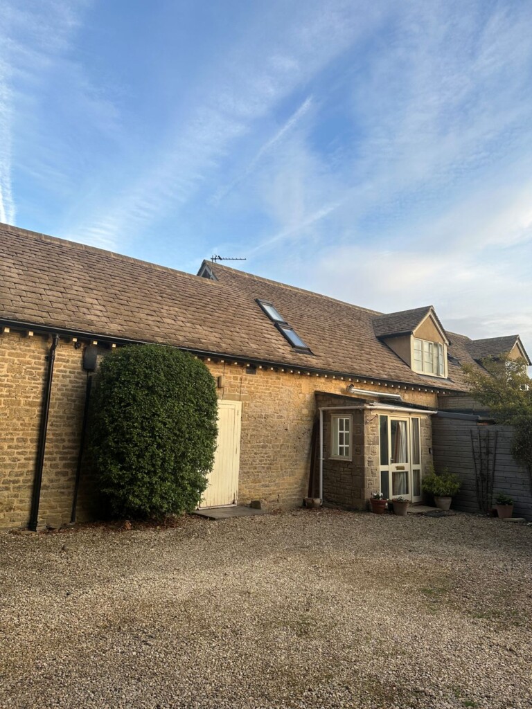コッツウォルズの小さな村、アンプニークルーシスにある一棟貸しのフラットは、1階にキッチンとリビング、屋根裏の2階がベッドルームで快適でした。