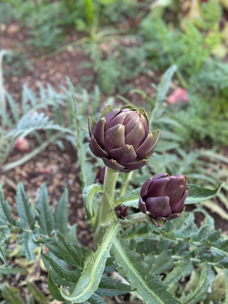 お庭にもアーティチョークに、ミニトマト、スイスチャ-ドにたくさんの花々、エマ・ブリッジウォーターのモチーフがあちこちに溢れていました。