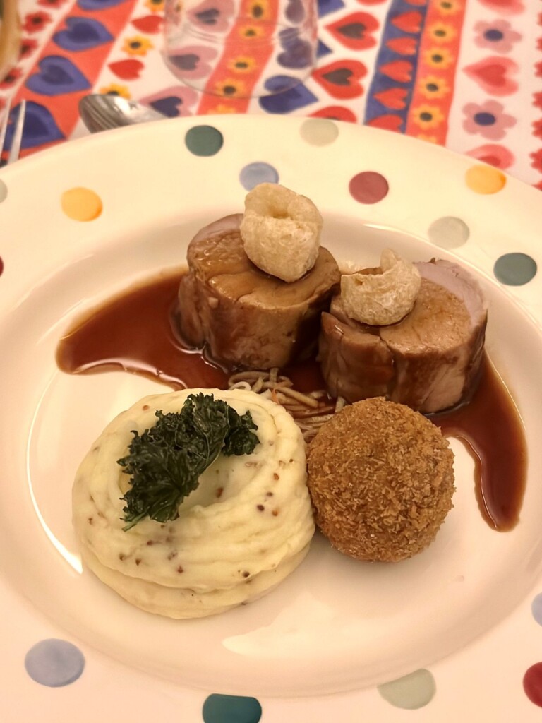 夕食はハムコート専属シェフによるお料理を、エマ・ブリッジウォーターの食器でいただきました。