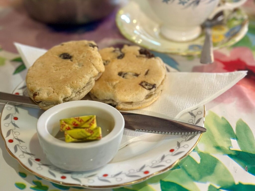 「ティ・フント・イル・ボント・ティールーム」では、ウェールズ名物のバラブリスをいただくことに。バラブリスは冷たい状態でバターをのせるのが、お決まりです。ドライフルーツがたっぷり入ったバラブリス、ここでも伝統的なウェールズのお菓子を堪能しました。